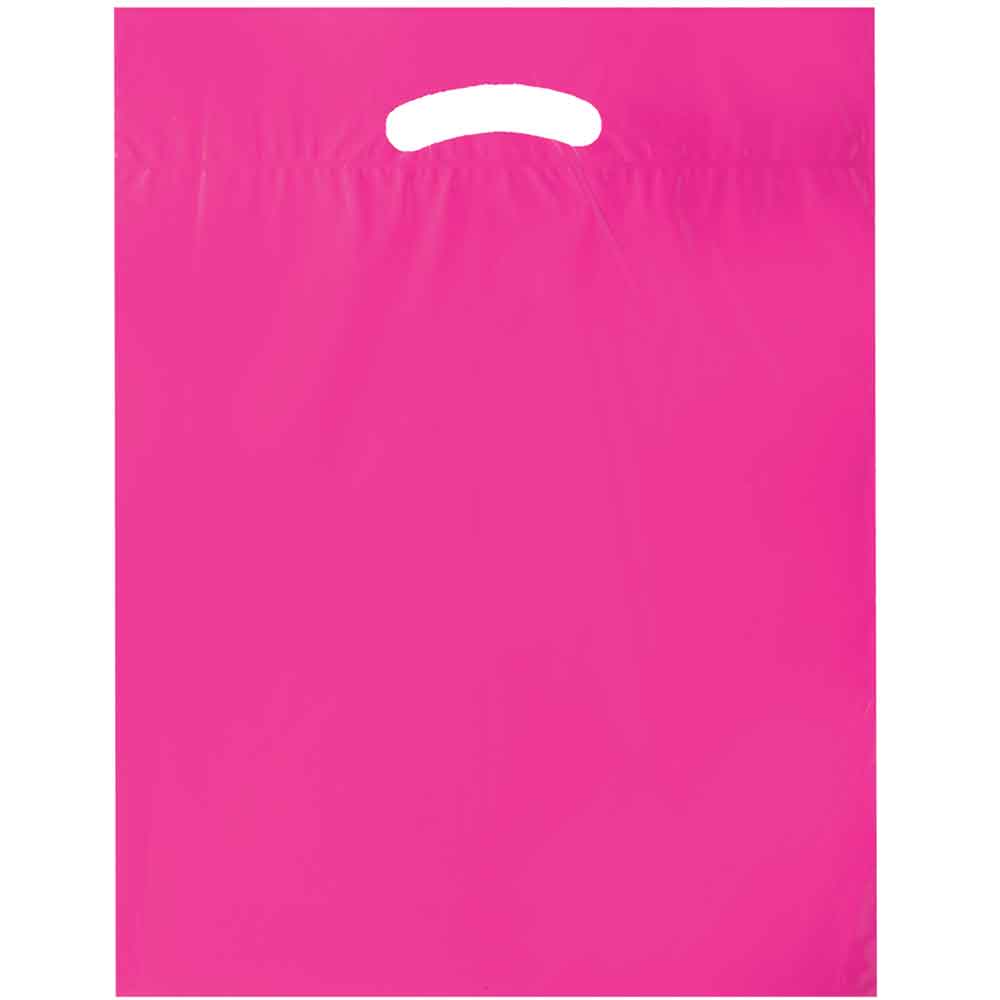 12" x 15" + 3" 2.5 Mil Pink Fold-Over Reinforced Die Cut Handle Bags 500/CS
