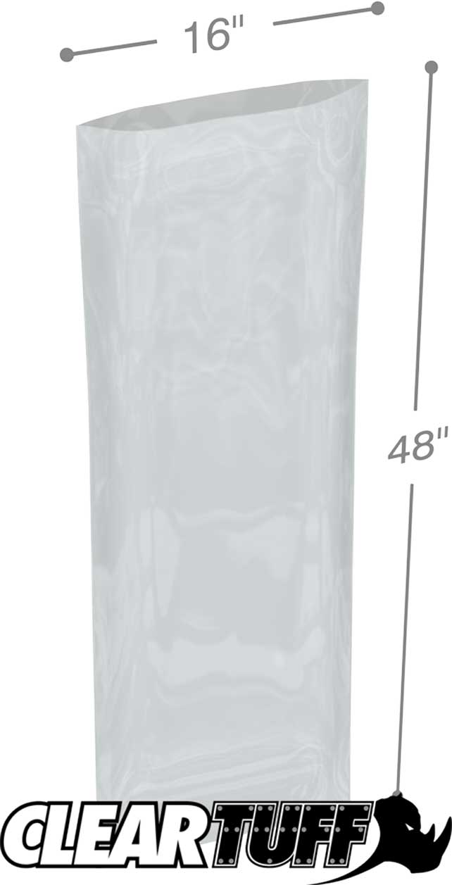 Our 44 x 48 3 mil flat poly bags offer medium weight protection of food, parts, hardware and more. All 44x48 3mil polybags are made from low density polyethylene and can be recycled. Our flat open top 44 x 48 .003 plastic bags feature impressive clarity and make storage and organization simple for industrial, food service and medical industry applications. These medium weight plastic lay flat 44 inch by 48 inch bags can be sealed by using twist ties, bag tape or by heat sealing, and they meet FDA requirements for use in food packaging and storage applications.
