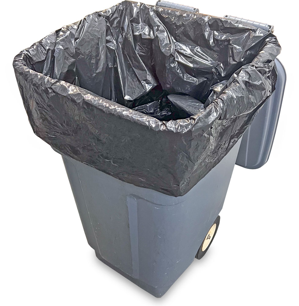 33 Gallon Regular Duty Clear Trash Bags 33" x 39" are a good economical choice, while being stretchable and offers additional puncture and tear resistance to collect and dispose of trash or other refuse. Each 33 Gallon garbage bag has a Star Sealed bottom sealthat resists leakage. Made from linear low-density polyethylene LLDPE, these regular duty 0.5 mil 33 Gallon garbage bags are durable and recyclable.